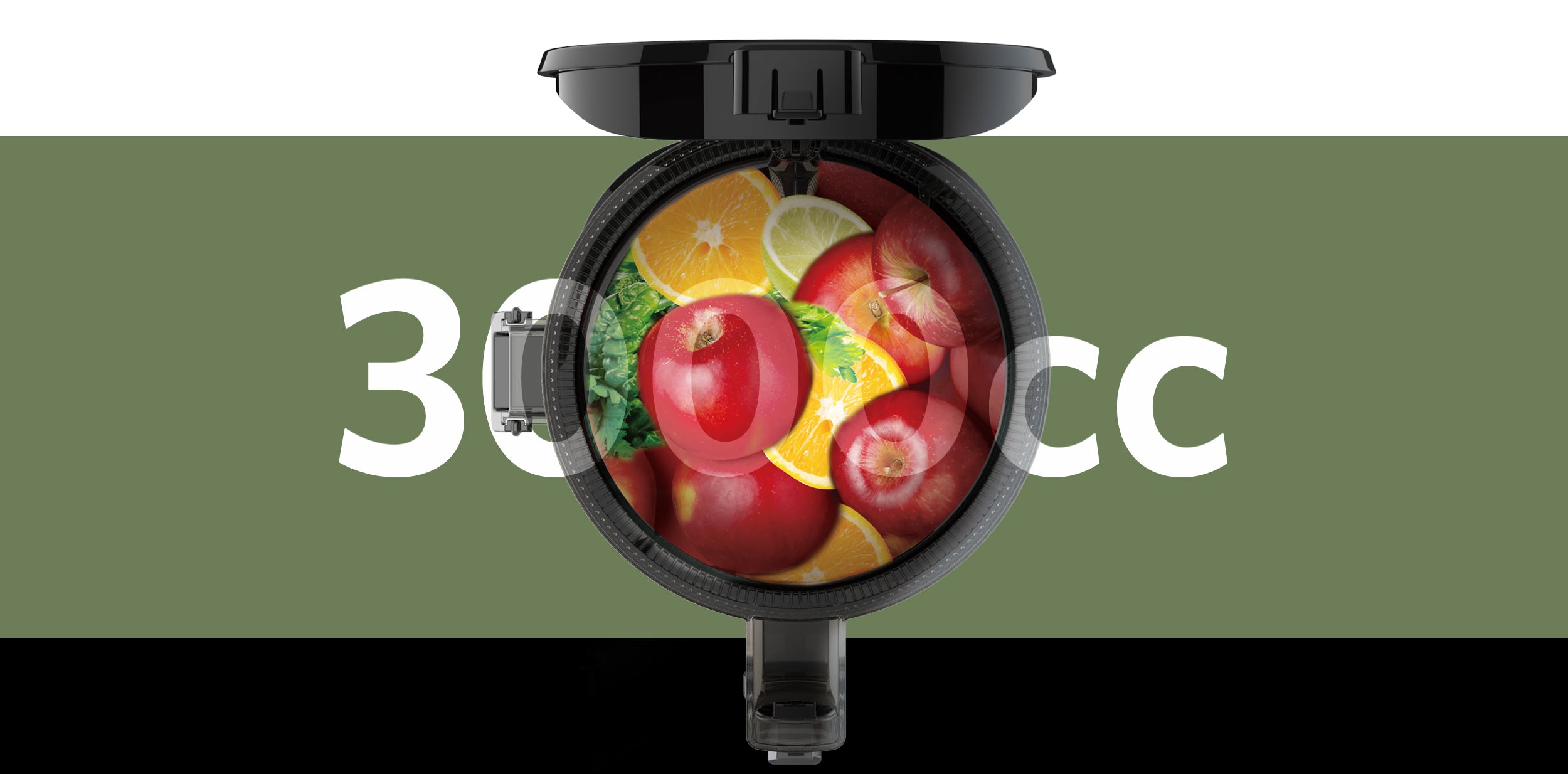 Với dung tích 3.0L, bạn có thể ép nguyên trái cây, rau củ quả cỡ lớn mà không cần cắt nhỏ, giúp tiết kiệm thời gian.
